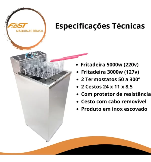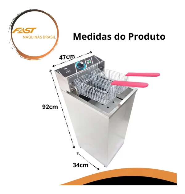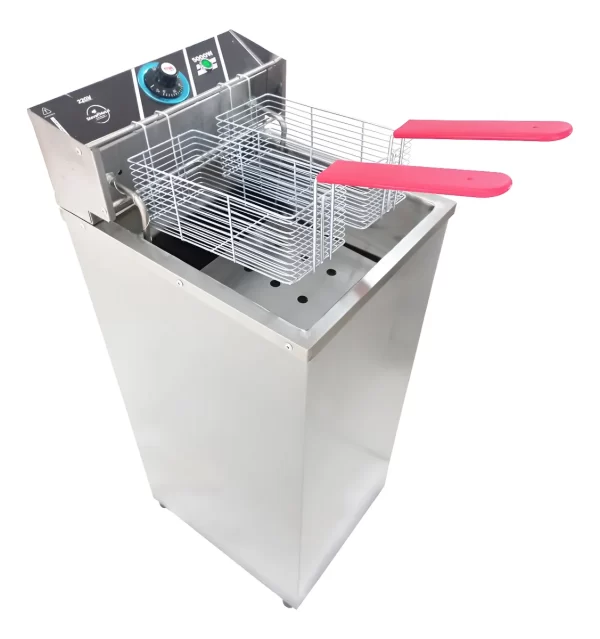 Para uma maior segurança, contém termostato regulável, cestos mais robusto produzido em arame estanhado e cuba em aço inox para uma maior facilidade na limpeza.