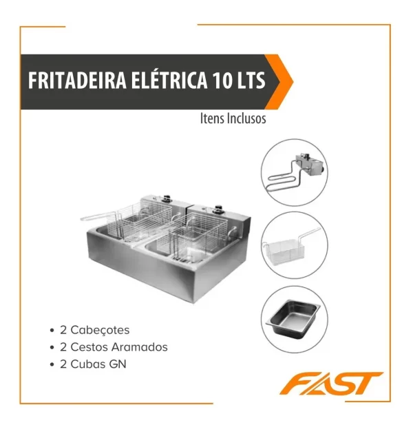 Com esta fritadeira da Fast Máquinas você terá o complemento perfeito para o seu negócio gastronômico. Poderá preparar pratos em grande volume para servir rapidamente a todos os seus convidados. Assim, você garantirá a saída ágil de cada pedido e fornecerá o melhor serviço aos seus clientes.Com esta fritadeira da Fast Máquinas você vai brilhar com os preparativos que poderá preparar para sua família e convidados. Você pode fritar de forma rápida e eficaz, obtendo uma textura crocante perfeita para suas refeições